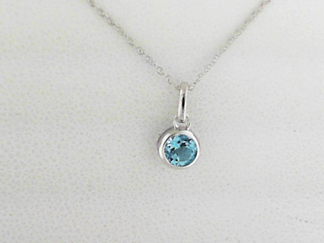 10K White Gold 4mm Blue Topaz Pendant