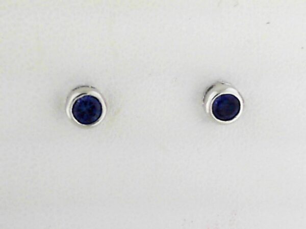 Elevate your look with these stunning 10K white gold earrings featuring a 4mm created sapphire in a classic bezel setting. Crafted for everyday elegance.