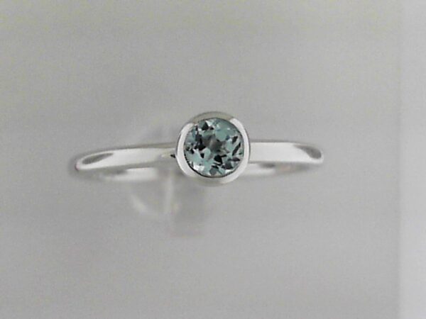 Elevate your style with this 10K white gold ring featuring a captivating 4mm sky blue topaz stone in a classic bezel setting. Crafted with precision, this elegant piece adds a touch of sophistication to any look.
