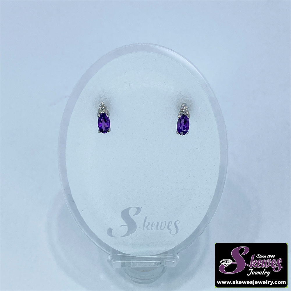 10K White Gold Amethyst and Diamond Accent Earrings