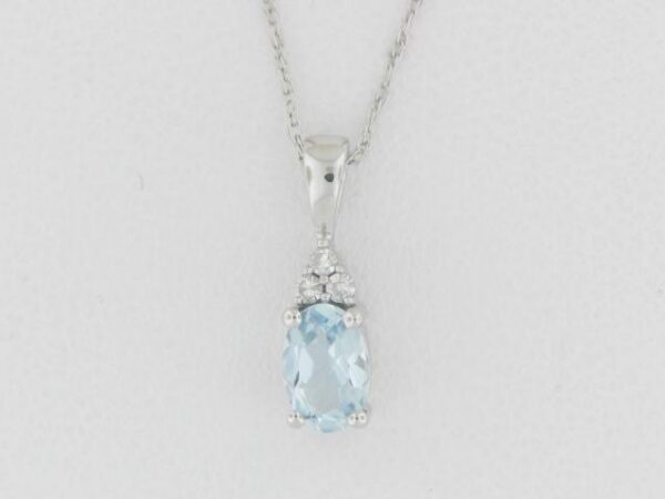 Elevate your style with this stunning 10K white gold pendant featuring a captivating aquamarine center stone in an emerald cut, accented by a touch of diamond sparkle. A versatile piece that adds a touch of elegance to any outfit.