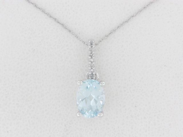 Elevate your style with this stunning 10K white gold pendant featuring a captivating aquamarine center stone and sparkling diamond accents. A timeless piece that adds a touch of elegance to any outfit.