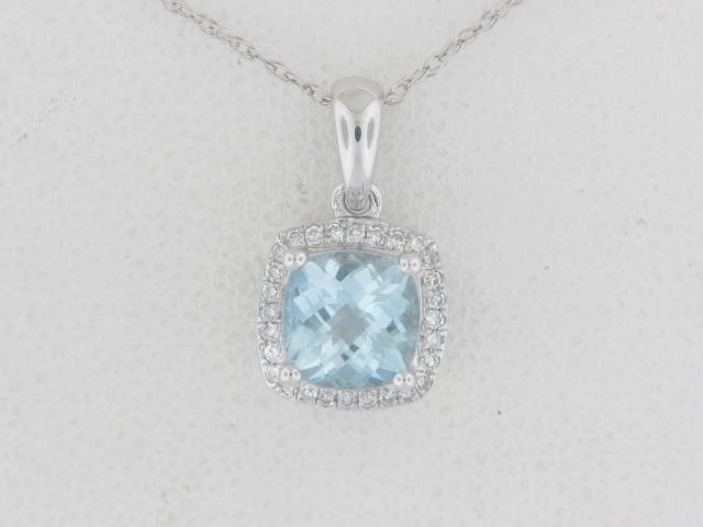 Elevate your style with this stunning 10K white gold pendant featuring a captivating aquamarine center stone and sparkling diamond accents. A timeless piece that adds a touch of elegance to any outfit.