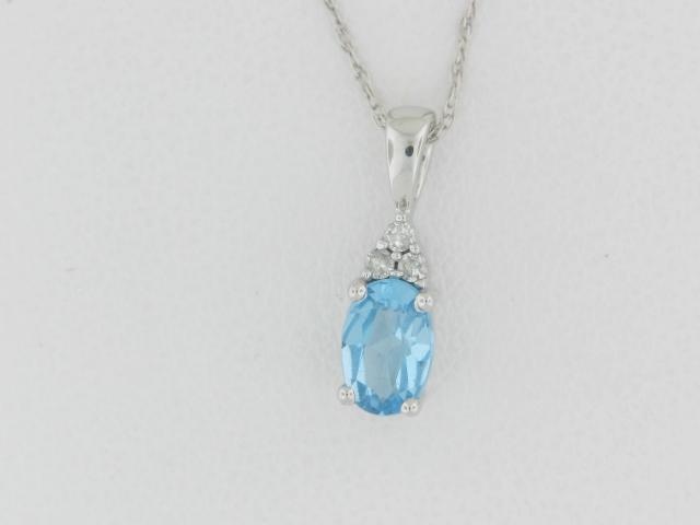 Elevate your style with this 10K white gold pendant featuring a mesmerizing blue topaz and a touch of diamond accents.