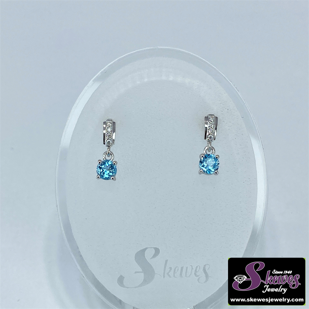 Elevate your look with these stunning 10K white gold earrings featuring a captivating blue topaz center stone. Crafted with precision, these earrings offer a timeless elegance that will complement any outfit.