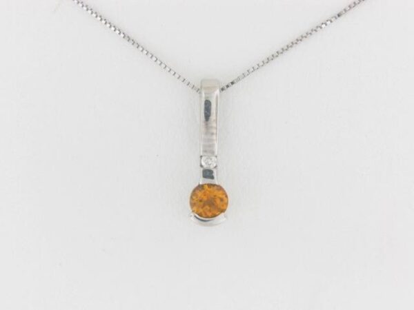 Elevate your style with this stunning 10K white gold pendant featuring a vibrant citrine center stone and a delicate diamond accent. A timeless piece that adds a touch of elegance to any outfit.