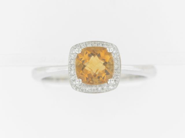 10K White Gold Citrine Ring with Diamond Accents