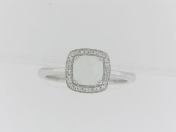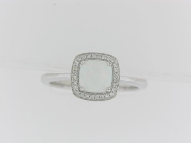 Elevate your style with this stunning 10K white gold ring featuring a captivating created opal center stone and sparkling diamond accents. A timeless and sophisticated choice.