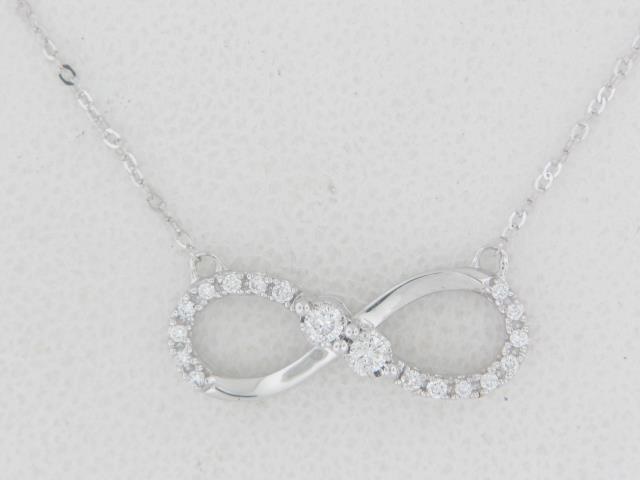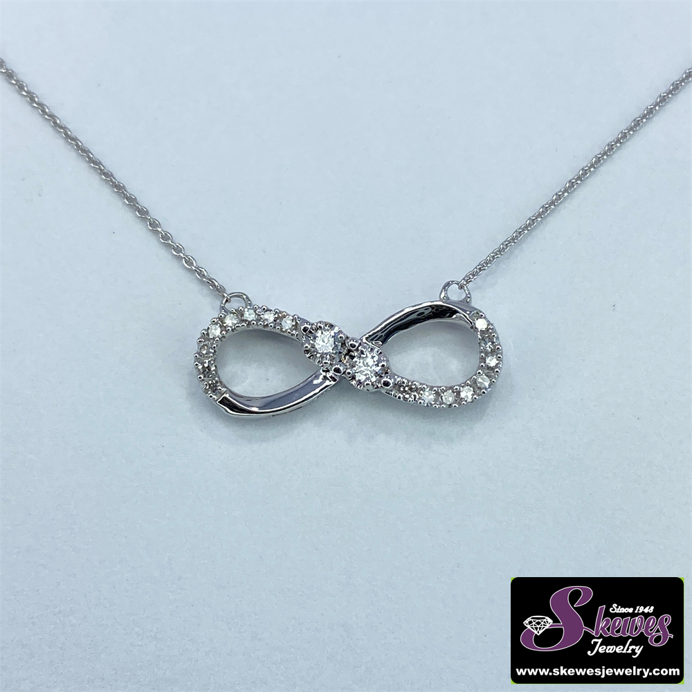 Elevate your style with this 10K white gold pendant featuring a sparkling diamond accent. The infinity design symbolizes eternal love and connection.