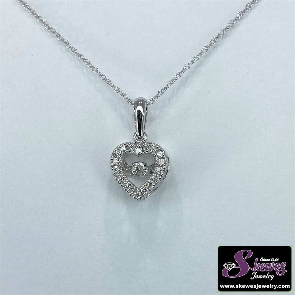 Indulge in the beauty of this 10K white gold pendant. The Rhythm of Love design and shimmering diamond accent come together to create a truly remarkable piece.