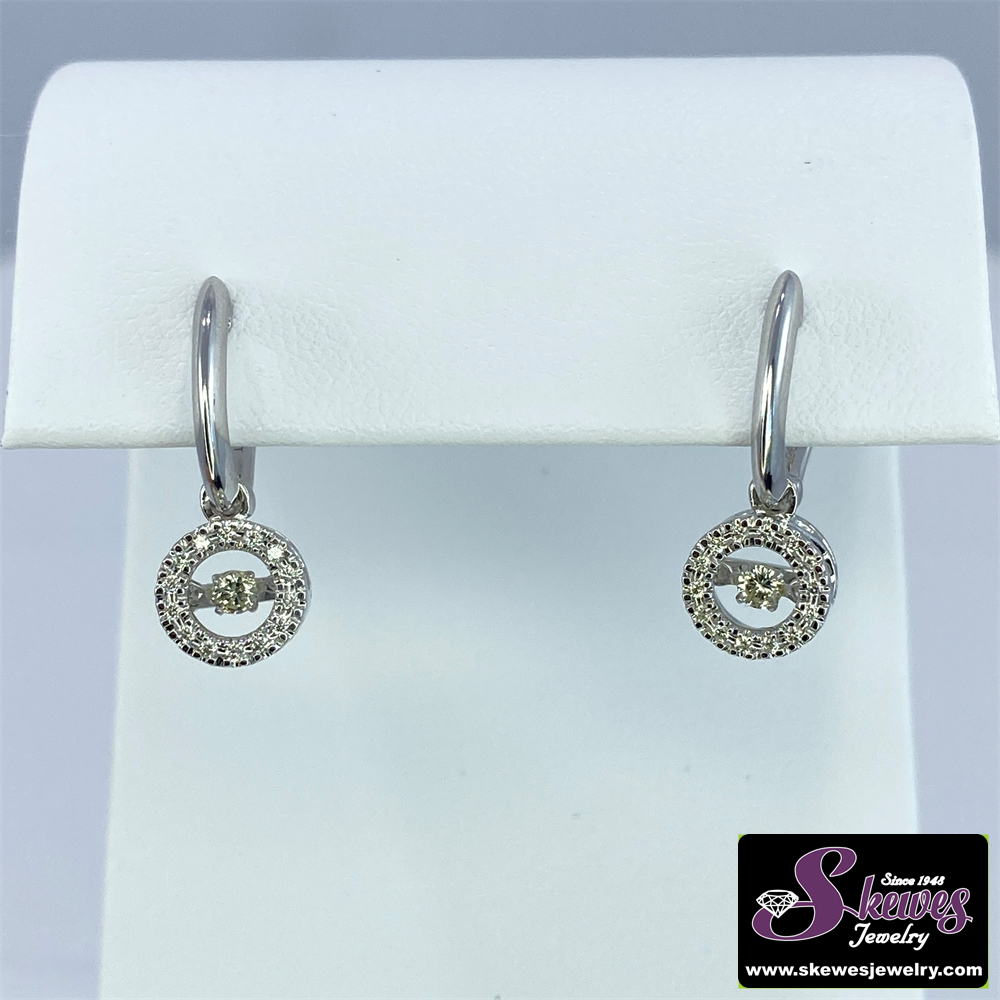 Elevate your style with these 10K white gold earrings featuring a delicate diamond accent that dances with the rhythm of love. The elegant design adds a touch of sophistication to your look.
