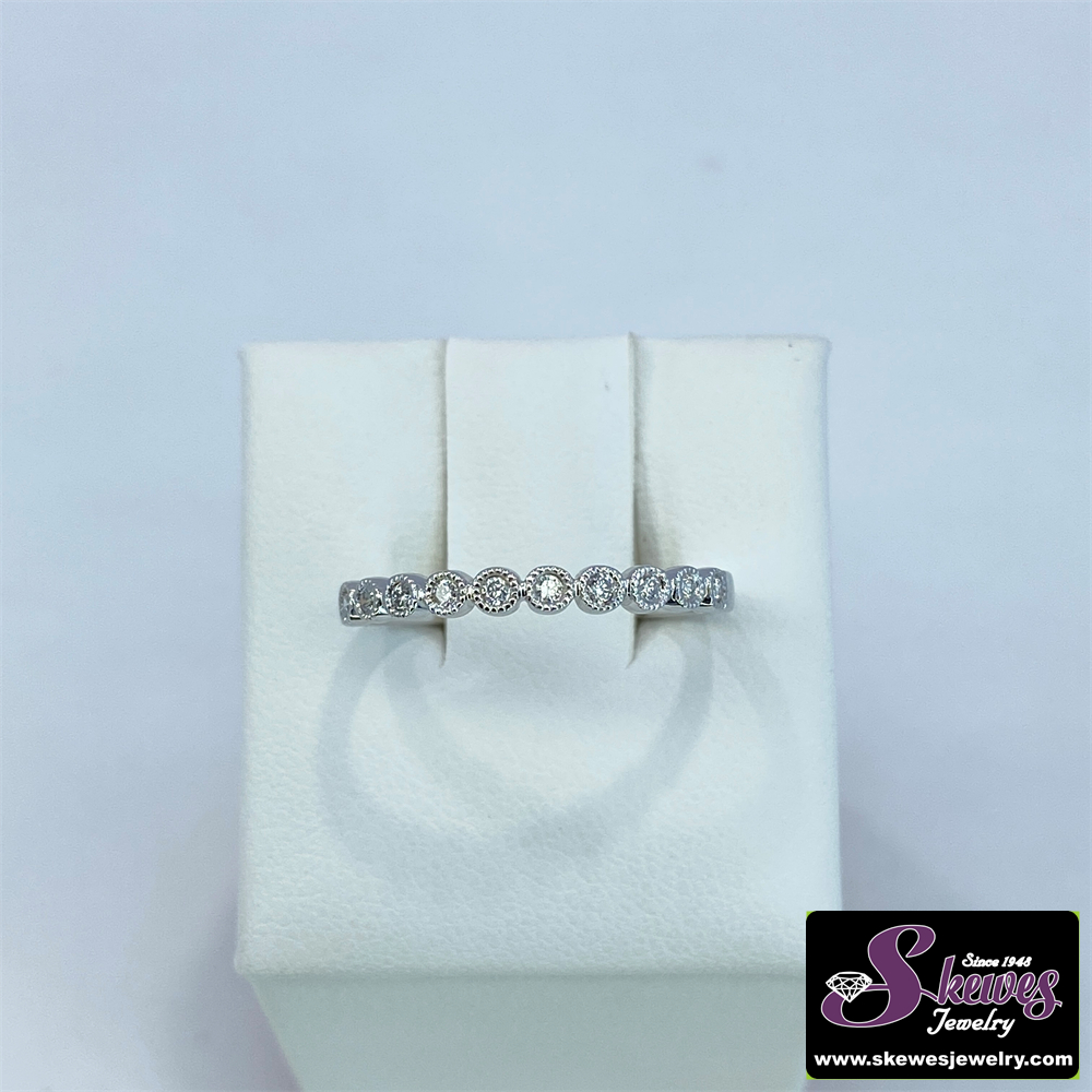 Elevate your everyday style with this stunning 10K white gold diamond stackable ring. Featuring a total diamond weight of .10 carats, this delicate ring adds a touch of elegance to any look.