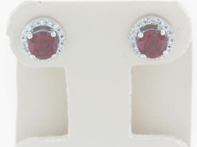 10K White Gold Genuine Garnet Earrings with Diamond Accents