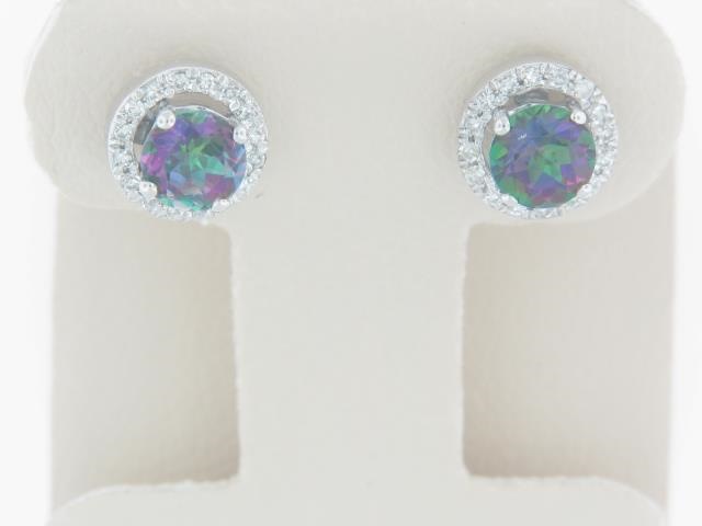 10K White Gold Mystic Fire Topaz Earrings with Diamond Accents