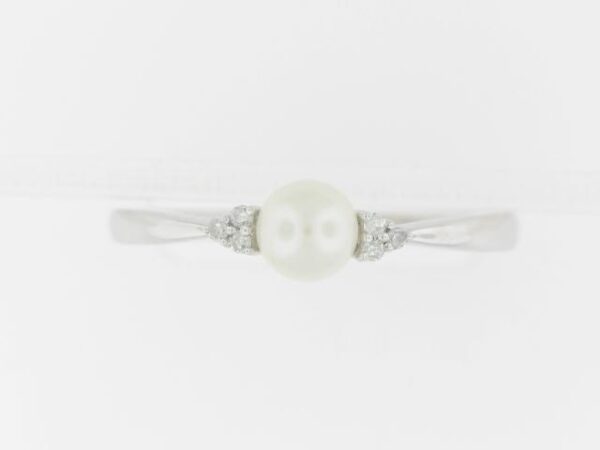 Crafted in 10K white gold, this stunning ring features a beautiful pearl center stone accented by a total of 0.04 carats of diamonds for a touch of elegance.