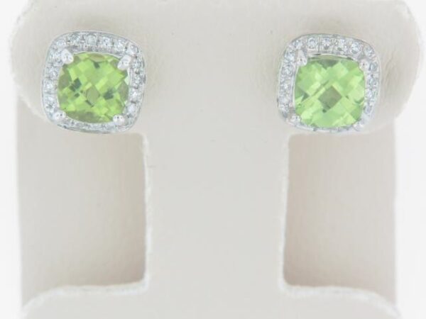Elevate your look with these stunning 10K white gold earrings featuring a vibrant peridot center stone and sparkling diamond accents. The perfect touch of elegance for any occasion.