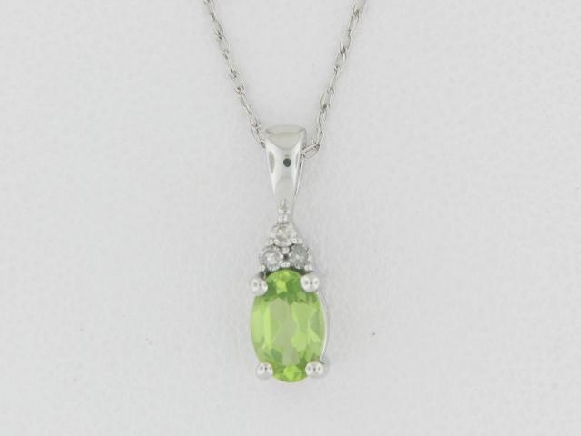 Elevate your style with this stunning 10K white gold pendant featuring a captivating peridot center stone and a touch of diamond accents.