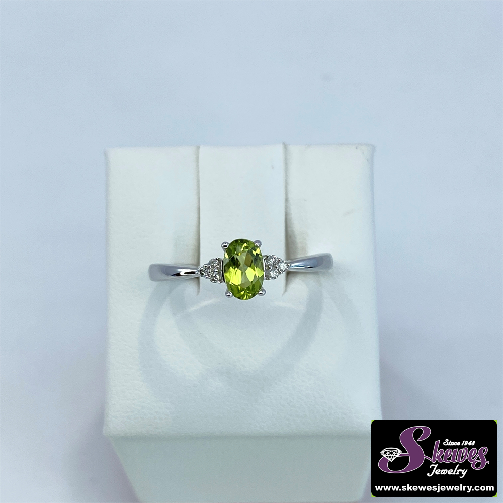 10K White Gold Peridot Ring with Diamonds
