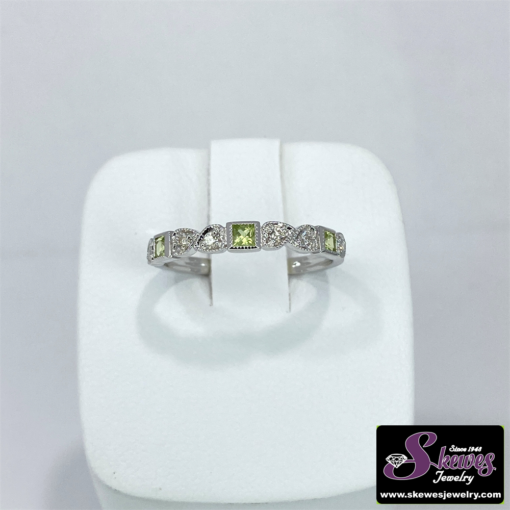 Elevate your style with this stunning 10K white gold ring featuring a vibrant peridot center stone and sparkling diamond accents. Designed for effortless stacking, this ring adds a touch of sophistication to any look.