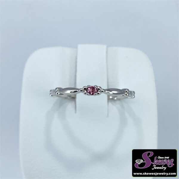Elevate your style with this exquisite 10K white gold ring featuring a captivating pink tourmaline center stone. Crafted with meticulous attention to detail, this piece is a true testament to timeless elegance.