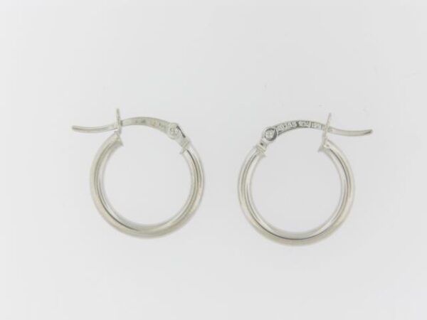 Elevate your look with these timeless 10K white gold polished hoop earrings. Measuring 2x15mm, they offer a classic and versatile style that complements any outfit.