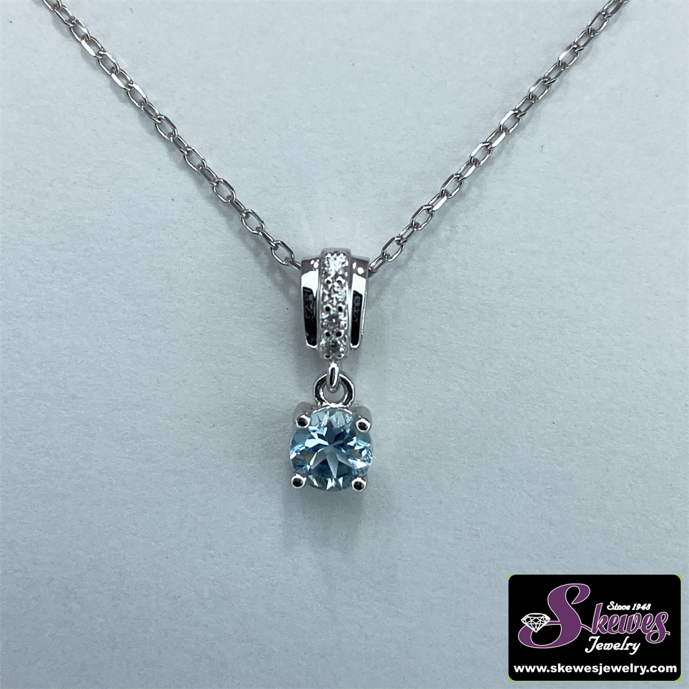 Elevate your style with this stunning 10K white gold pendant featuring a captivating round aquamarine gemstone. Crafted with precision, this piece adds a touch of elegance to any outfit.