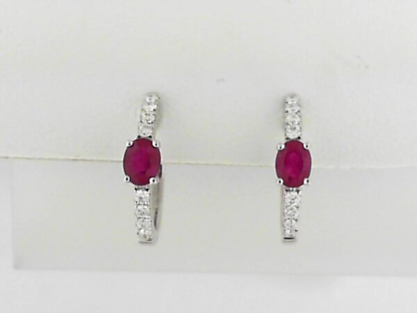 10K White Gold Ruby Hoop Earrings with Lab Grown Diamonds