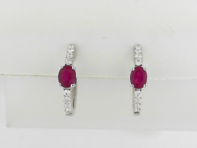 Elevate your look with these stunning 10K white gold ruby hoop earrings, beautifully accented with .16ct of lab grown diamonds.