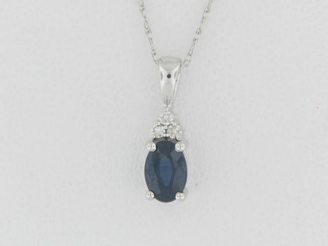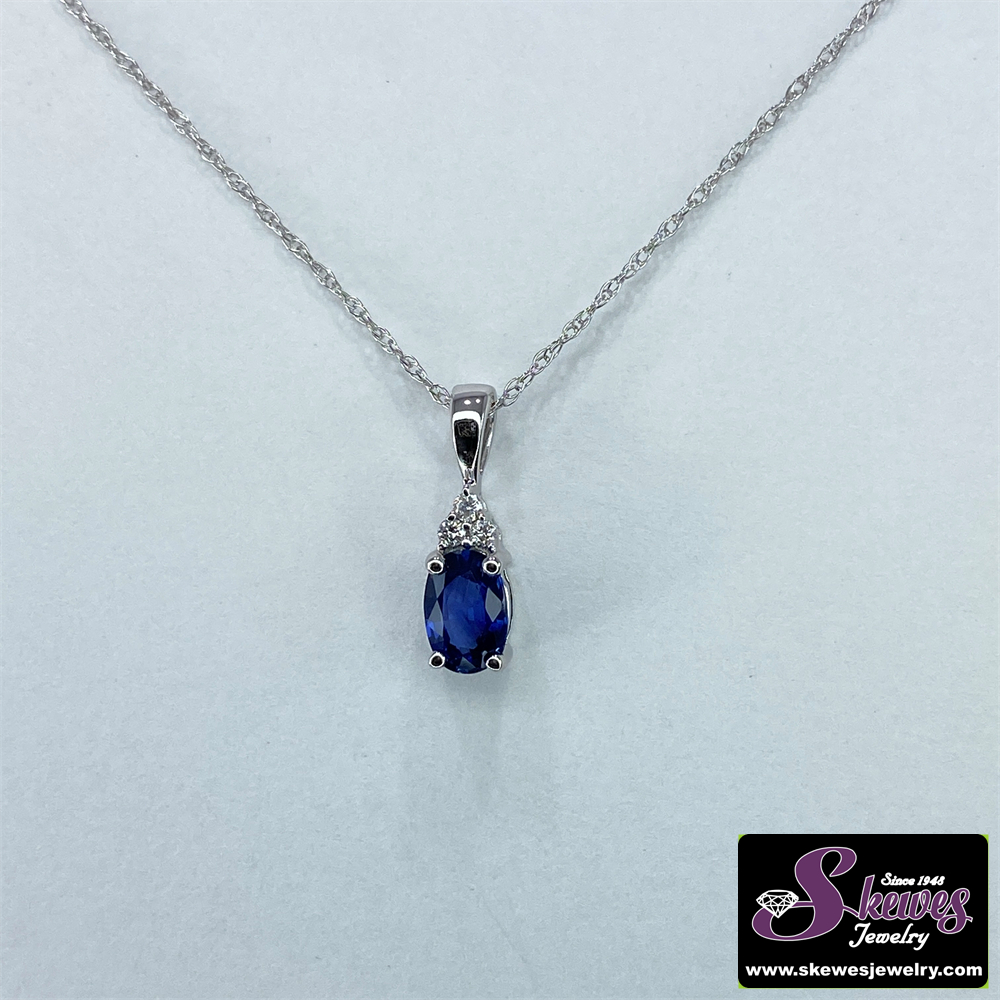 Elevate your style with this elegant 10K white gold pendant featuring a captivating sapphire center stone and a delicate diamond accent. The timeless design creates a sophisticated and versatile look that will complement any outfit.