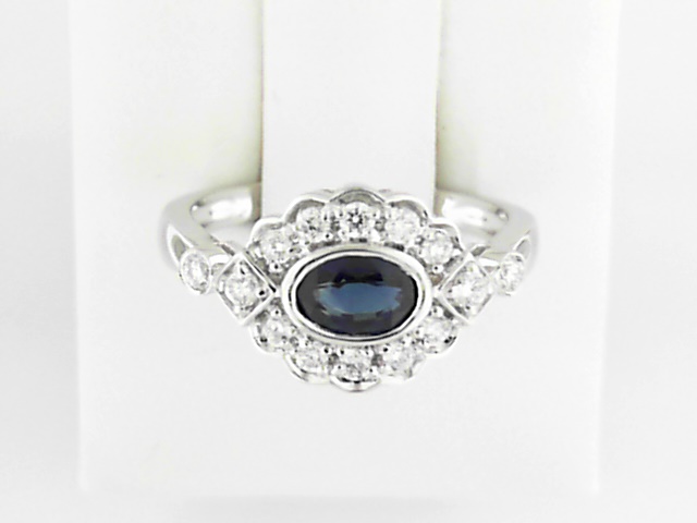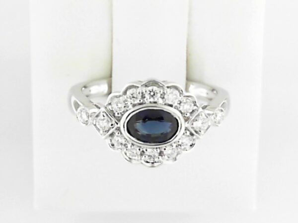 Elevate your style with this exquisite 10K white gold ring featuring a captivating sapphire center stone and a sparkling array of lab grown diamond accents. The perfect balance of timeless elegance and modern sophistication.