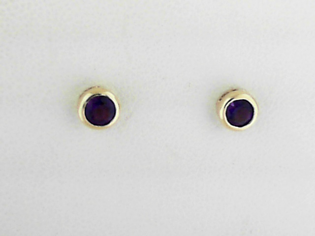 Elevate your look with these stunning 10K yellow gold earrings featuring a 4mm round amethyst stone in a classic bezel setting.