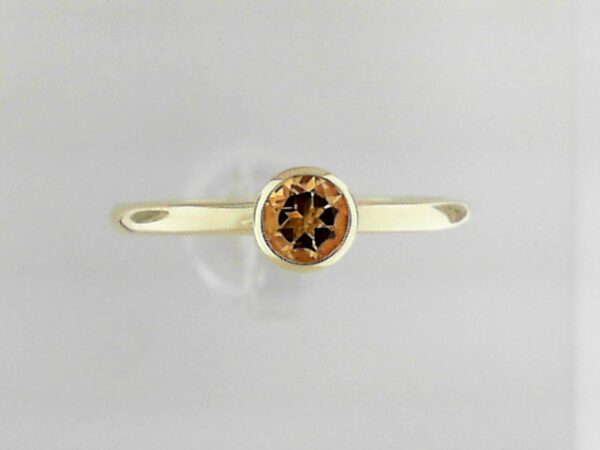 Elevate your style with this 10K yellow gold ring featuring a 4mm round citrine center stone in a classic bezel setting, perfect for everyday wear.