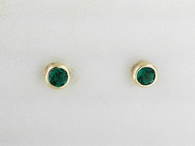 Elevate your look with these 10K yellow gold earrings featuring a 4mm created emerald in a classic bezel setting. Crafted with precision, these earrings offer a timeless and elegant look that complements any outfit.