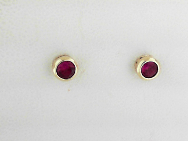 Elevate your look with these stunning 10K yellow gold earrings featuring a 4mm created ruby in a classic bezel setting. Crafted for everyday elegance.