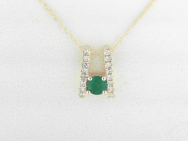 Elevate your style with this stunning 10K yellow gold pendant featuring a captivating emerald cut emerald and shimmering diamond accents. A timeless piece that adds a touch of elegance to any outfit.