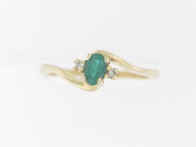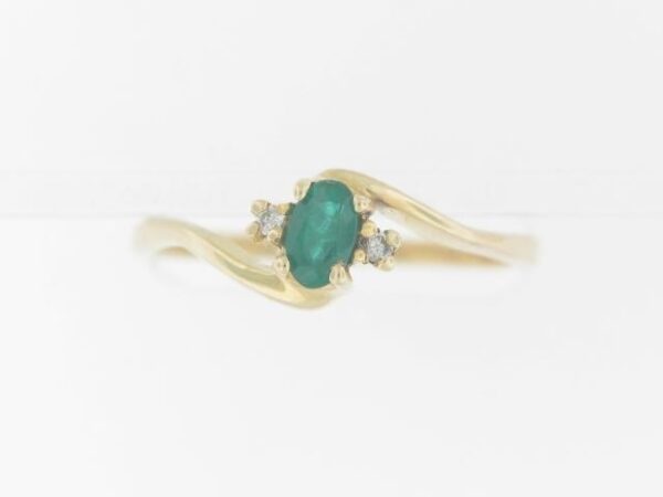 Elevate your style with this stunning 10K yellow gold ring featuring a captivating emerald cut emerald center stone and sparkling diamond accents. The perfect choice for an elegant everyday look.