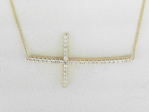Elevate your style with this stunning 10K yellow gold necklace featuring a sideways cross design accented with a 0.25 carat total weight of lab grown diamonds.