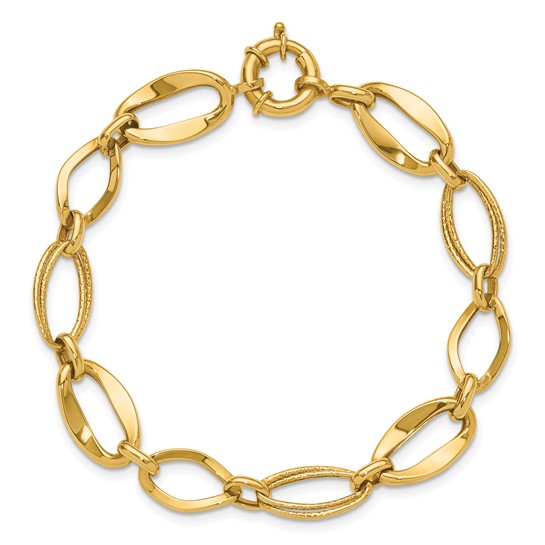 Elevate your style with this 10K yellow gold bracelet featuring a polished and textured link design. Crafted for a comfortable and secure fit, this bracelet is the perfect accessory to complement any outfit.