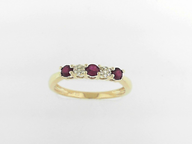 Elevate your style with this stunning 10K yellow gold ring featuring a captivating ruby center stone and sparkling diamond accents.