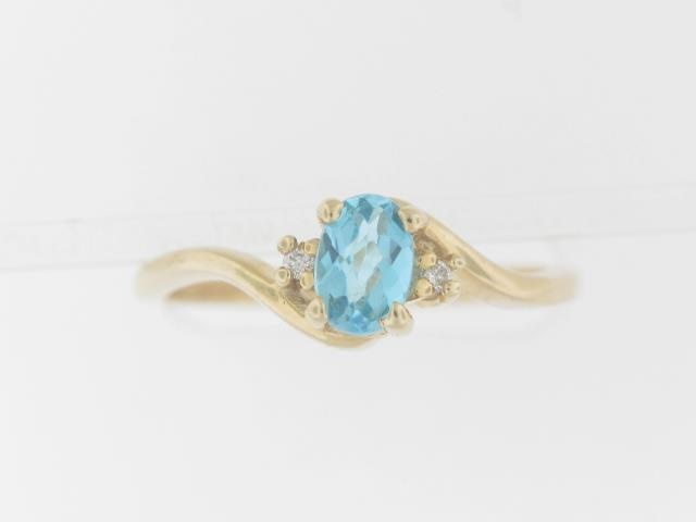 Elevate your style with this stunning 10K yellow gold ring featuring a captivating Swiss blue topaz center stone and delicate diamond accents. The perfect balance of elegance and sophistication.