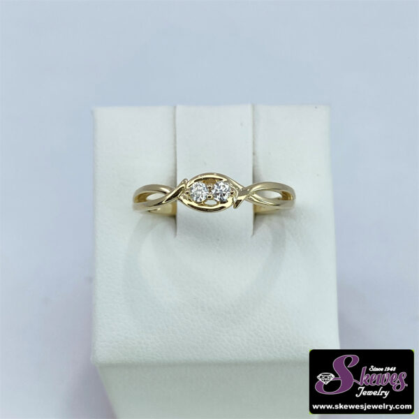 Elevate your style with this stunning 10K yellow gold fashion ring featuring two sparkling diamonds with a total weight of 0.10 carats.