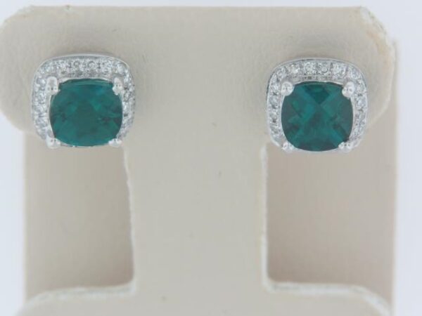 10KW Created Emerald Earrings with Dia TW .10