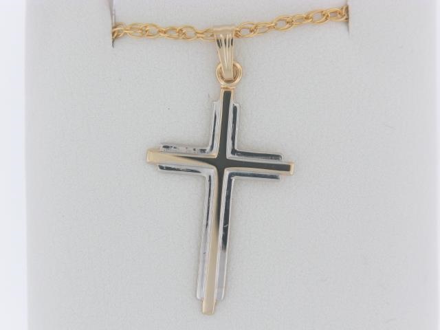 Crafted with 14K gold-filled metal, this classic cross pendant features a timeless design that adds a touch of elegance to any outfit. The 18-inch chain allows for versatile wear.