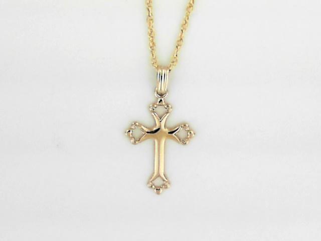 Crafted with 14K gold-filled metal, this classic cross pendant hangs elegantly on an 18-inch chain, adding a touch of refined style to any outfit.