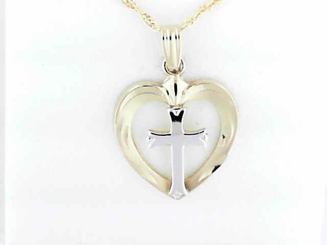 Crafted with 14K gold filled, this delicate pendant features a heart design with a cross accent. The 18-inch chain allows for versatile styling.