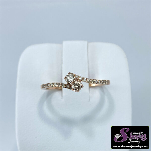 Crafted in luxurious 14K rose gold, this elegant ring features two complementary stones in a timeless design.