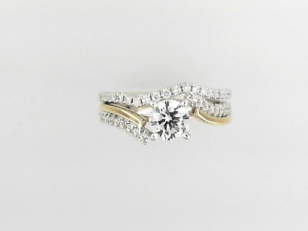 Elevate your proposal with this stunning 14K two-tone semi-mount engagement ring set. Featuring a round .71 carat lab grown diamond center, this set can be customized with your choice of compatible gemstone. Crafted with exceptional attention to detail, this ring set is a timeless symbol of your love.