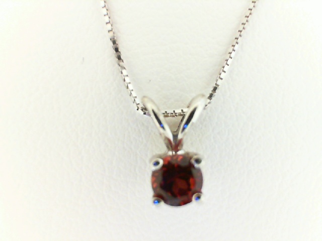 Elevate your style with this 14K white gold pendant featuring a captivating 4mm round garnet gemstone. The elegant design adds a touch of sophistication to your look.