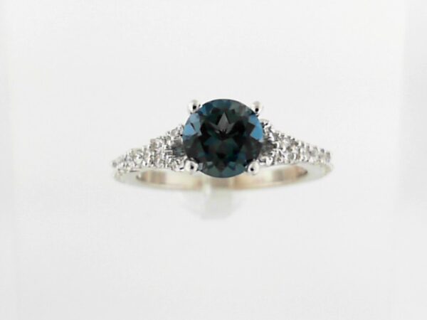 Elevate your style with this exquisite 14K white gold pendant featuring a captivating 6.5mm round London Blue Topaz and a sparkling diamond melee. The perfect accessory to complement any outfit.