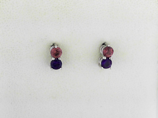 Elevate your style with these stunning 14K white gold earrings featuring a captivating combination of 3.75mm amethyst and rhodolite gemstones.